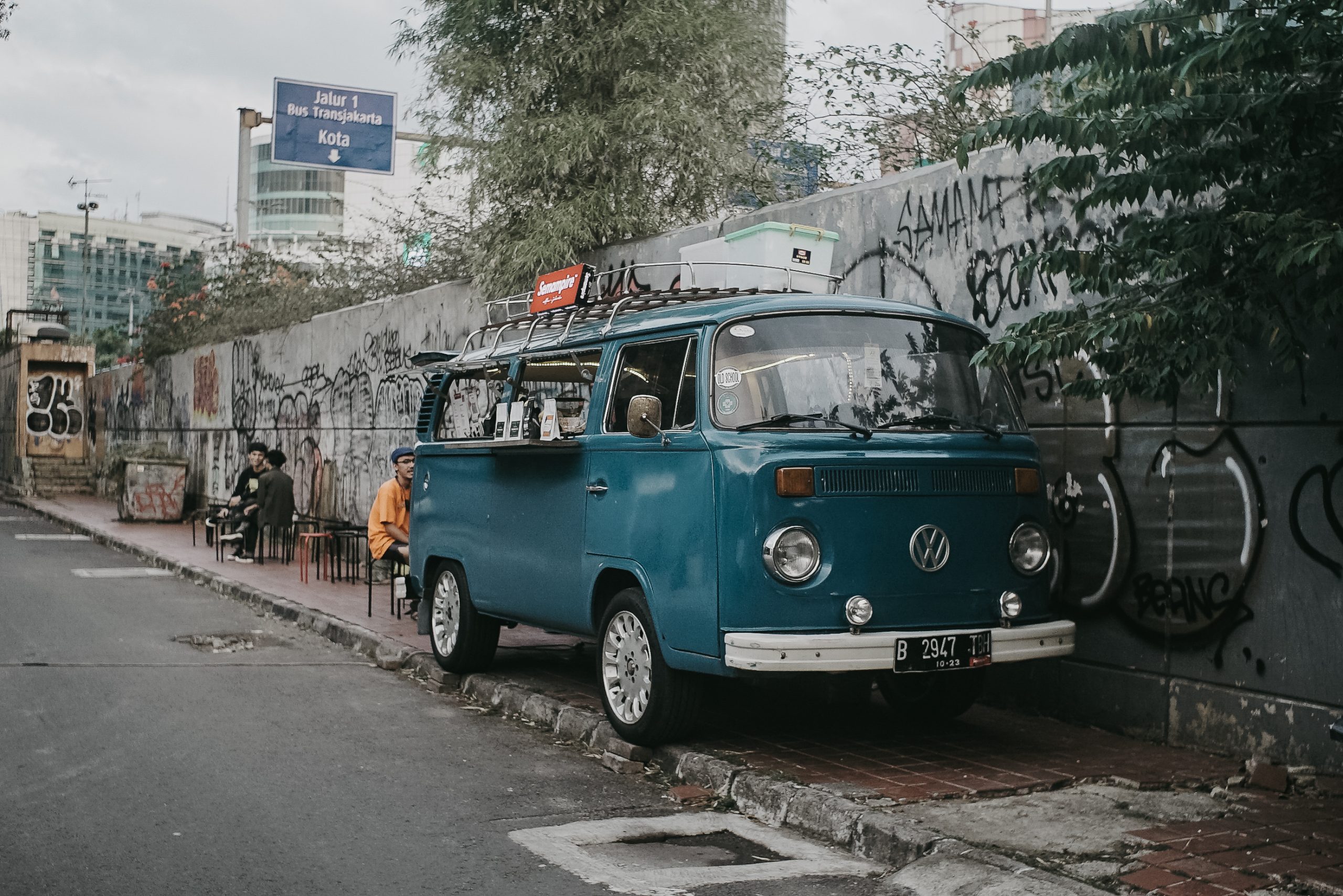 Coffeeshop ini emang tempatnya nyempil di gang, ada di belakang terminal Blok M. Bentuknya juga unik, pake mobil vw combi yang dimodif biar bisa masukin mesin dan perangkat buat jualan kopi. bukanya mulai dari jam 5 sore sampe jam 10an malam.
